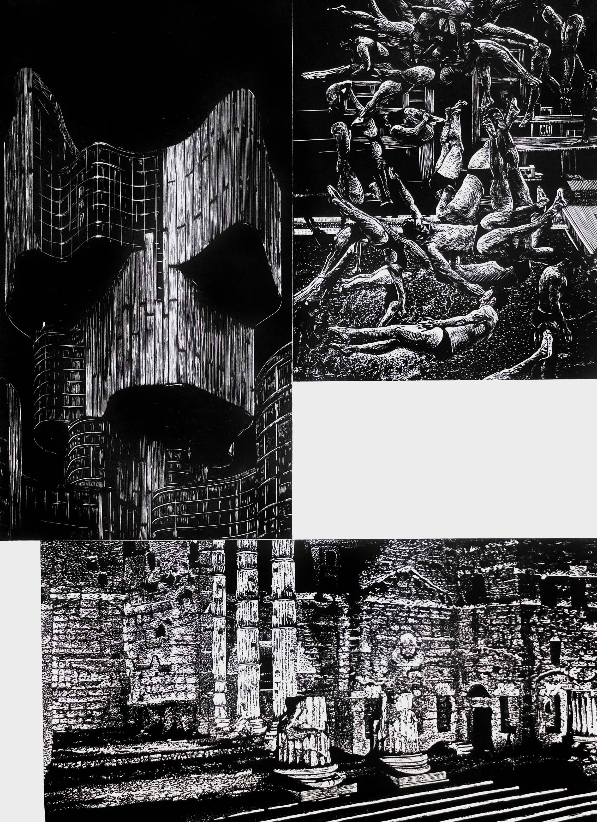The Fragments series was created in 2019 at the CIEC Foundation (Betanzos, A Coruña) based on the re-contextualization of three iconic themes: crowds, ruins, and brutalist architecture.
